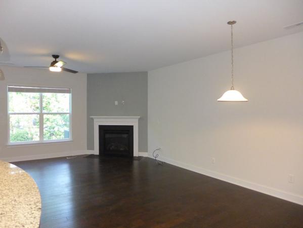 The home has an open floorplan - with a central and spacious room combining living, dining, and kitchen areas - with each space defined. There are hardwood floors in this room. There is a ceiling fan and a gas fireplace in the living area. There is an exit from the living area to the patio on the back side of the home. The kitchen features white cabinets, a glass tile backsplash, granite countertops, stainless appliances, recessed and pendant lighting, and a pantry closet. An island with a raised breakfast or serving bar separates the kitchen from the dining area. The main level is completed by the half bathroom, coat closet, and garage entry all off the front foyer area. The bedrooms and a loft are on the second level, all with carpet. The versatile loft space could be used as an office, play space, or study. All of the bedrooms have ceiling fans. The master bedroom features a tray ceiling, a walk-in closet, and an en suite master bathroom with a dual sink vanity, a tile surround shower, and a linen closet. The second full bathroom on this level is convenient to the remaining bedrooms. The laundry room is also on the second level, with a washer and dryer included. This home has a one car garage and driveway parking only. The community offers a picnic area. Pet with fee and prior approval.