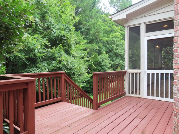 - Minutes to I-40 & The Streets at Southpoint Mall - Close to RDU International Airport and Research Triangle Park - Convenient to UNC and Duke University - Adjacent to Jordan Lake recreation areas The open and airy transitional floor plan flows between rooms with comfortable sophistication. There are hardwood floors in the entry, living room, dining room and family room. A formal dining room and formal living room flank the two story grand entry. Both rooms feature deep molding. The dining room is accented by classic wainscoting. Graceful columns define the two rooms. The central and spacious family room includes a gas-log fireplace with tile surround and a ceiling fan. This comfortable room is open to the gourmet kitchen and breakfast area. The kitchen features stainless appliances, granite counter tops, recessed lighting and custom cabinetry. A wrap around breakfast bar defines the kitchen space from the breakfast area. Both the kitchen and breakfast area have tile flooring. There is an exit from the breakfast area to the screened porch and deck. A half bathroom, back entry area, and the utility room complete the first level. The utility room includes built in cabinets, a basin work sink and washer and dryer. A convenient storage bench, coat hooks and closet are located in the back entry area. An attractive wrought iron and wood rail adorns the stairs to the second floor landing area. Four of the bedrooms are on the second level, all with Berber carpet. The master suite features a classic trey ceiling, sitting area, and an attached office with built in shelving. French doors lead to the exquisite master bathroom with separate vanity areas with marble counter tops, tile floor and surround, a jet tub, and a separate shower with dual shower heads and bench. A large walk-in closet completes the master suite. The remaining three bedrooms on this level all have ceiling fans. One bedroom has a private full bathroom. The third full bathroom is also on this level. This bathroom has a separate vanity area with dual sinks. The versatile lower level includes the fifth bedroom, a rec-room, media room, all with carpet, and a full bathroom. The rec-room includes a ceiling fan and French doors to the patio behind the home. The adjacent bedroom features a ceiling fan and bay window. The fourth full bathroom has a separate vanity area and tile floor and surround. This house is located on a quiet cul-de sac and backs to a private wooded area. A walking trail at the end of the cul-de sac, provides convenient access to the community playground, pool and tennis. Pet considered, will require fee and prior approval. This is a Durham address in Chatham County (Chatham County school district).