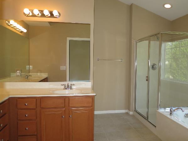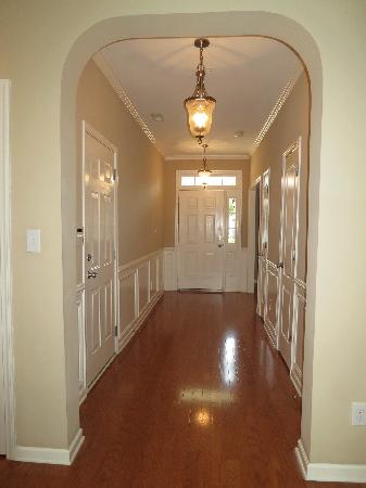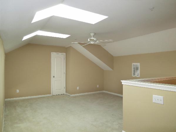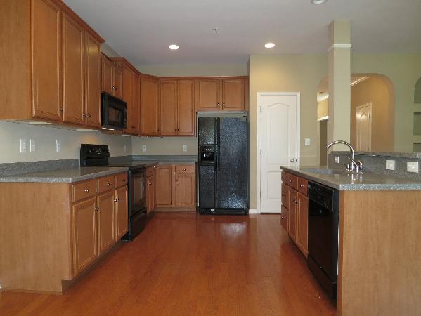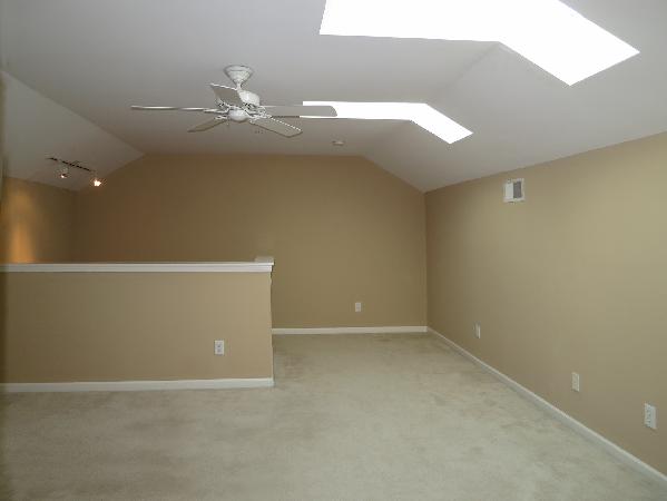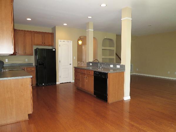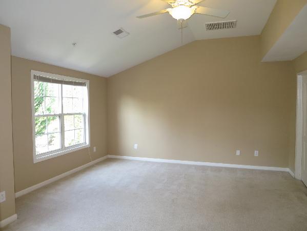 The townhome features hardwood floors throughout the main level. A formal living room or sitting room with a picture window and deep molding is located just off of the entry foyer. The entry foyer is detailed with wainscoting and molding; an arched entry leads from the foyer to the family room. The spacious family room is open to the kitchen and includes a gas-log fireplace accented by a lighted arched media shelf, and built-in bookshelves. The kitchen includes a raised bar open to the family room, and a large dining space. The kitchen features solid surface countertops, recessed lighting and a pantry closet. All kitchen appliances are included. There is an exit to the back patio from the breakfast area. Landscaped hedges buffer both sides of the patio and yard. A half bath completes the main level. All of the bedrooms are on the second level, all with, carpet, and vaulted ceilings. The master bedroom includes a walk-in closet, ceiling fan, and a private bath with a corner dual sink vanity, garden tub and a separate shower. One of the remaining two bedrooms has access to a private balcony. The laundry room with washer and dryer hook-ups and a second full bath are on this level. The bonus room is on the third level of the townhome. This room has a ceiling fan and two skylights. This home has an attached one car garage with entry to the main level of the home. Pet with fee and prior approval. A security system is available, any service, hook up or monitoring fees are not included.