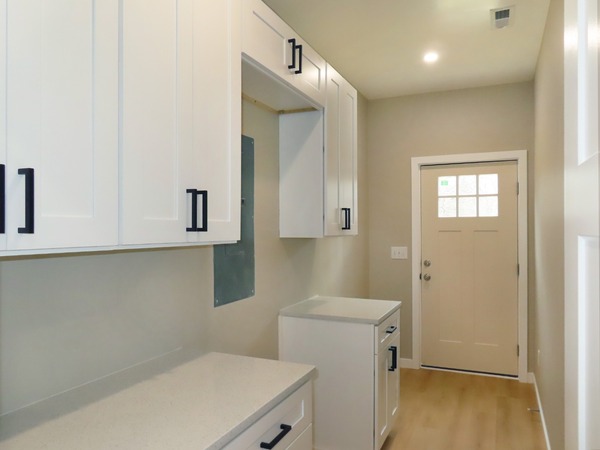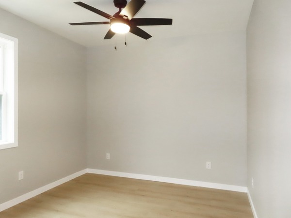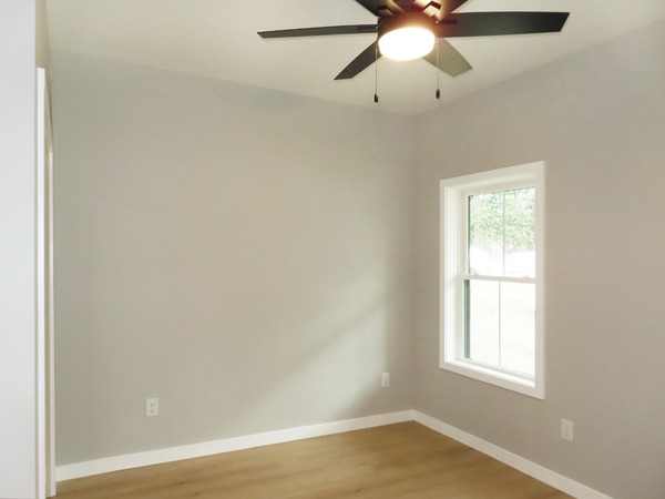 The home has LVP flooring throughout. The living room features a ceiling fan and opens up to the kitchen. The kitchen features ample cabinets, an island, quartz counters, and stainless appliances. There is a laundry closet with a washer and dryer, coat closet, half bathroom, and utility room off of the kitchen. All three bedrooms have a closet, ceiling fan, and an en-suite bathroom with tub/shower combinations. The rear bedroom has a walk-in closet. The utility room has ample cabinets for extra storage and leads out to the large deck on the back of the home. The driveway offers parking for two vehicles. Pet with fee and prior approval. Current marketing for SHORT TERM lease through mid July 2026.